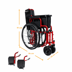 Ratastoolil on kokkupandav terasraam, mis lihtsustab selle transportimist ja hoiustamist. Käetoed on üles tõstetavad ning jalatoed eemaldatavad ja reguleeritava pikkusega, võimaldades kasutajale suuremat mugavust ja kohandamisvõimalusi.