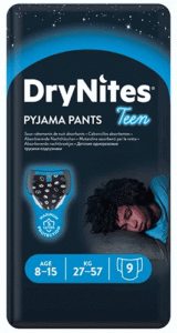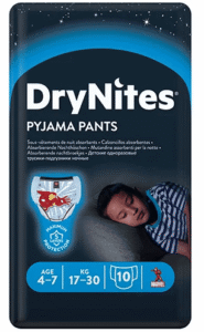 5-kihilised mähkmed on valmistatud diskreetsetest, pehmetest ja erilistest materjalidest, mistõttu on nad õhemad kui tavalised mähkmed ning riiete all märkamatud. Mähkme vettpidav väliskiht, ülivenivad küljekinnitused, aluspükstele sarnanev disain – kõik see võimaldab lapsel tunda end sama mugavalt kui puuvillastes aluspükstes. Laps saab rahulikult magada ning Teil on muretu öö, teades, et voodipesu ja pidžaamad jäävad kuivaks. Tänu DryNites® pidžaamapüksmähkmetele ärkavad lapsed kuivana ja muretult, et olla valmis tegema seda, mida nad kõige paremini oskavad – olla lapsed!