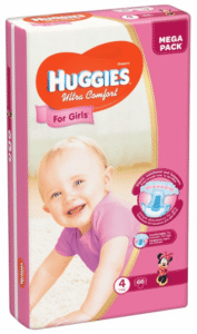 Huggies® Ultra Comfort Girl värviliste Disney® kangelaste joonistustega lõhnatud teipmähkmed on disainitud spetsiaalselt tüdrukutele, et pakkuda rõõmu moekatele preilidele. Imavad kanalid juhivad niikuse ühtlaselt laiali kogu mähme ulatuses, et vähendada mähkme pundumist ja rippumist. Ainulaadne, pehme imav sisekiht absorbeerib vedeliku ja niiskuse sekunditega, asudes täpselt seal kus tüdrukutel vaja – keskosale lähemal. Mähkmed istuvad hästi tänu jalgade vahelisele anatoomilisele kujule. Läbimõeldud mugavus – elastne, pehme seljaosa ja pikad ümardatud nurkadega korduvsuletavad teibiribad, mis kinnituvad kogu värvli ulatuses, aitavad mähkme kinnitatada vastavalt beebi kehakujule, tagavad beebi liikumisvabaduse ning hoiavad mähkme turvaliselt paigas.