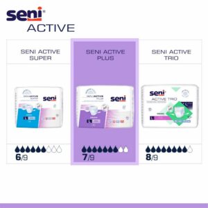 Seni Active Plus elastne ühekordne aluspesu on kaasaegne ja mugav lahendus mõõduka kuni raske uriinipidamatuse korral. See on loodud vastama kasutajate vajadustele, kes soovivad olla aktiivsed ning säilitada liikumisvabadust isegi uriinipidamatuse korral. Aluspesu sobib eriti hästi neile, kes ei talu traditsioonilisi kõikehõlmavaid mähkmeid, näiteks dementsusega inimeste puhul. Seni Active Plus on suurepärane alternatiiv tavalistele täiskasvanute mähkmetele, pakkudes mugavust, usaldusväärsust ning diskreetsust. Selle toote peamised omadused hõlmavad: