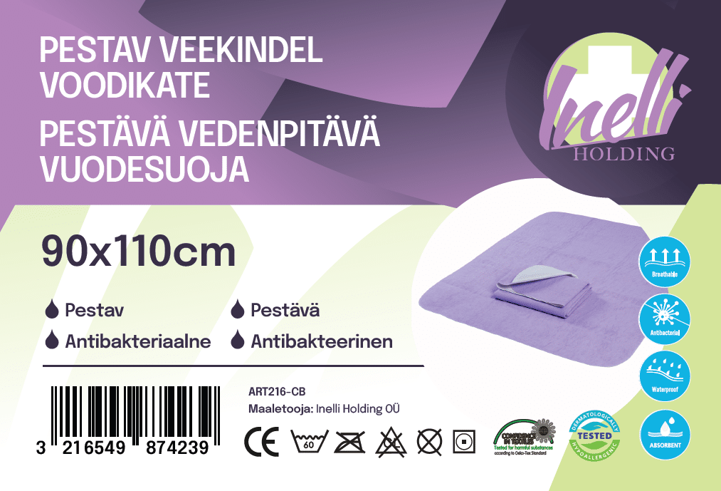 Antiallergilise frotee pealispinnaga pestav veekindel voodikate mõõduga 90×110 cm.
